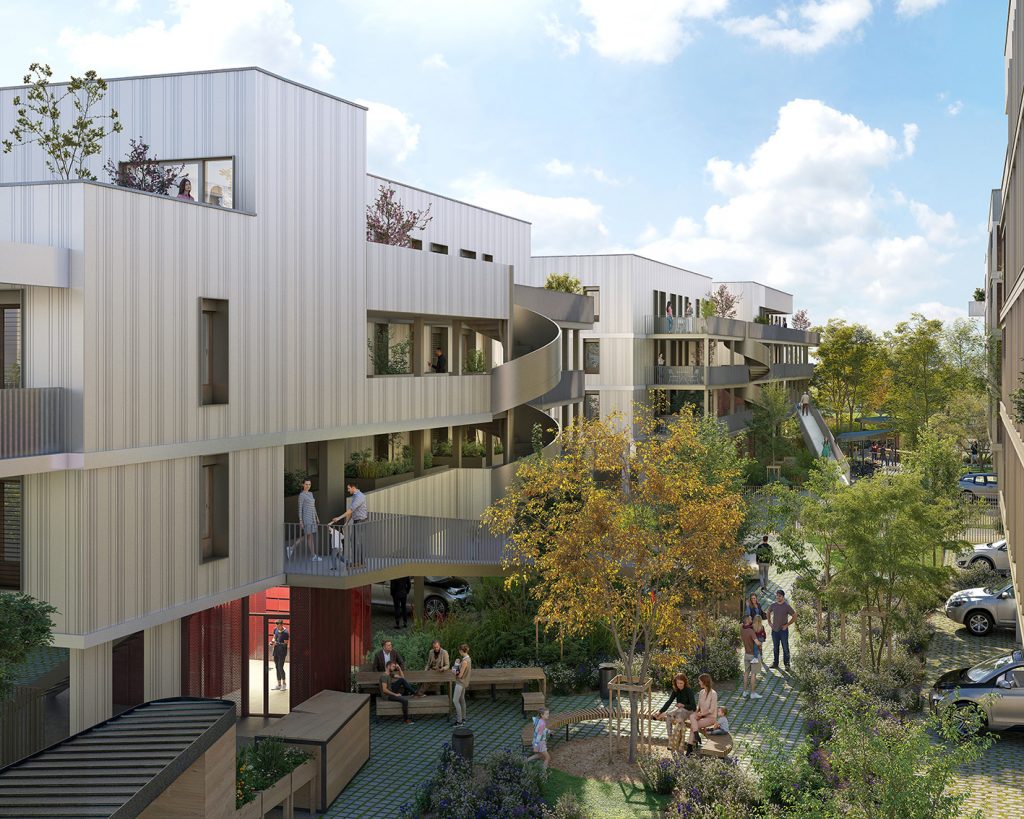Cet ensemble immobilier illustre la capacité du Groupe em2c, entreprise à mission – et de ses filiales – à concevoir des projets urbains alliant innovation constructive, responsabilité environnementale, accompagnement au parcours résidentiel et qualité d’usage.